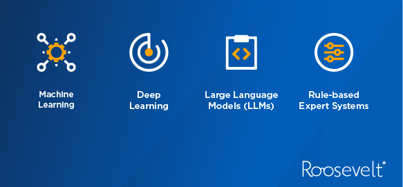 - Rule-based Expert Systems: A system, like Roosevelt’s BRIDE rules engine, uses AI inference to emulate human logical reasoning when through numerous human expert-defined business rules processing data patterns such as claims, patient history, eligibility, and clinical procedures. These systems are often referred to as expert systems that apply knowledge from human experience. However, Roosevelt’s BRIDE rules engine does not make clinical decisions, ensuring that all clinical judgments remain with qualified healthcare professionals.