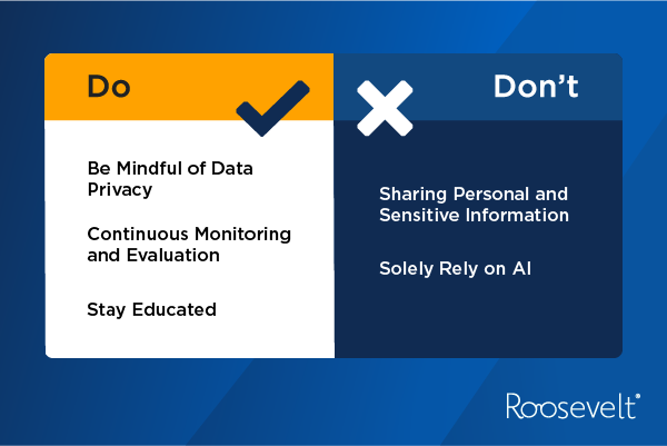 - Don’t Solely Rely on AI: While AI can provide valuable insights and automation, it is crucial to include human oversight in the decision-making process. AI systems can sometimes “hallucinate”, causing errors or generating biased results. It’s great to use AI, but always double-check what it outputs and make sure it is accurate. Having a human in the loop ensures that decisions are reviewed, validated, and adjusted as necessary, maintaining accountability, regulatory compliance, and ethical standards.